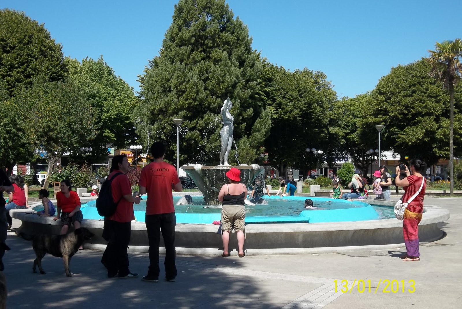 Próceres en la Plaza de Armas de Castro, Ciudad Puerto y Capital de la Provincia de Chiloé desde 1982, X Región, Chile.