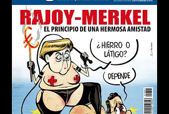 La revista “El Jueves” denunciaba el jueves pasado que la red social Facebook había censurado una portada en la que aparecían Ángela Merkel y Mariano Rajoy practicando sado. “Facebook eliminó la imagen y comunicó al administrador que la había subido que se le sancionaba con 30 días sin poder subir contenido”, explicaron desde El Jueves. La portada de la publicación era de noviembre del año pasado. Sin embargo, “El Jueves” vio que funcionaba perfectamente tras el reciente rescate bancario de la UE a España, así que la volvió a subir a Facebook. La viñeta mostraba a una Merkel vestida con ropa interior de cuero que daba a elegir a Rajoy entre “hierro o látigo”, a lo que el presidente del Gobierno respondía: “Depende”. Cuando se colgó la misma portada, en noviembre de 2011, en Facebook, no sucedió absolutamente nada”. Antes de ser censurada, la imagen “corrió como la pólvora” por la red social, pero pronto les llegó el siguiente mensaje: “Hemos eliminado el contenido que has colgado porque viola las Normas de Derechos y Responsabilidades de Facebook”. Unas normas que, al parecer, carecen del sentido del humor. “El Jueves” añade que no es la primera vez que la red social les censura una imagen. “Meses atrás, Facebook nos vetó la imagen de una boca con barba que parecía una vulva. Incluso cuando la pusimos en horizontal y se veía claramente que era una boca con barba”.