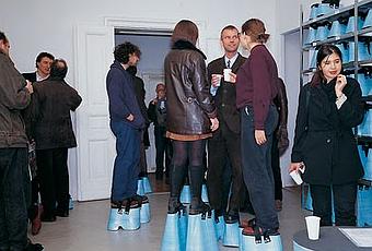 El artista plástico Hans Hemmert, famoso por su trabajo con globos amarillos, ideo una curiosa fórmula para hacer que todos hablen a la misma altura. Cada invitado usaba zapatos con una plataforma a la medida que les permitía alcanzar la altura de 2 metros. Las plataformas fueron construídas en espuma azul y el objetivo era que todos los asistentes estuvieran al mismo nivel de la vista.