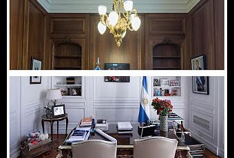 Ya finalizaron los trabajos sobre los ventanales termales del Salón Azul, y de pintura en muros y en cielorrasos de las circulaciones, que reportaban desprendimientos.En el despacho de la Presidencia del Senado se puso en valor la boiserie que había sido pintada de blanco, mientras que las arañas habían sido reemplazadas por luminarias modernas y la mesa de reuniones y el escritorio se había cambiado por muebles de metal y vidrio.