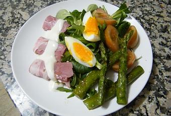 El otro día os hablé de como sin tiempo ni excesivas ganas podíais haceros un estupendo bocadillo mediterráneo, hoy traigo una rica ensalada con salsa de yogur.