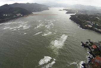 Quien me conoce, ya sabe que solo no sería capaz en absoluto de realizar una sesión de KAP, así que yo he puesto el lugar, Barrika, en el cual está casi siempre garantizado un viento constante y sostenido, además de tener incomparables paisajes hechos de mar y de acantilados…todo lo demás, lo ha traído Iñigo Onandia, el investigador marino que ya estuvo en Photosatriani por su actividad con los atunes. Iñigo es una de estas personas que tiene constantemente que hacer algo, inventarse algo, estar activo; es también un manita un gran amante del mar y de la pesca (con 17 años le “robaba el bote” al padre para ir a pescar atunes con anzuelo y caña). …y es justo con una caña para pescar atunes que fuimos a hacer volar la cometa y empezar nuestra sesión de KAP. Iñigo se ha construido con sus propias manos el soporte que se engancha al hilo de la cometa y que sostiene la cámara. Con todo esto, lanzamos la cometa atada a la caña y empezamos “a pescar” imágenes como esta: