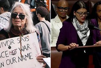 Mientras la congresista Tlaib se enfrentaba a la medida de censura en el Congreso, Marione Ingram, una sobreviviente del Holocausto de 87 años de edad, se encontraba muy cerca de allí, manifestándose frente a la Casa Blanca para exigir que el presidente Joe Biden pida un alto el fuego en Gaza.