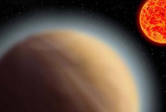 Entonces pensaron otra alternativa: que la baja densidad del planeta se debiera a la existencia de una atmósfera extensa. Aunque inicialmente esta atmósfera podría haber estado compuesta por elementos químicos ligeros y abundantes en las regiones de formación planetaria, como hidrógeno y helio, la radiación ultravioleta y de rayos X de la estrella habría evaporado esta atmósfera primordial, dejando otra secundaria compuesta principalmente de agua.