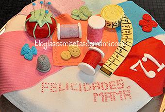 Hoy os traigo una tarta muy especial que me ha gustado mucho hacerla: una tarta costurero. Fue el regalo de cumpleaños que le hicieron a la cumpleañera sus tres hijos.