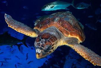 Este gran ejemplar de tortuga boba fue rescatado por el Centro de Recuperación de Fauna Silvestre de Taliarte y luego llevada al acuario, donde permanecerá hasta que pueda ser reintroducida en el océano