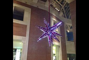 Estrellas de cartón piedra colocadas por operarios en la soledad y el frío de la noche.