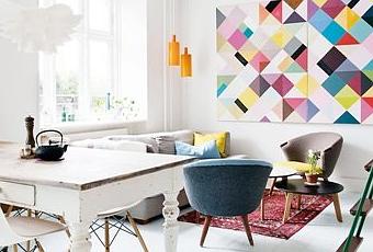 Y otra de esas casas en las que se nota que hay vida. Una vivienda con una decoración nórdica-escandinava de 75 m2 con muchos detalles que la hacen personal y acogedora. La vivienda fue adquirida por los dueños en no muy buenas condiciones y confiesan que al principio no le veían solución a su reforma. Al final, con la ayuda de un arquitecto, consiguieron crear “su vivienda”. La mayoría de los muebles fueron adquiridos de mercados de pulgas y luego restaurados, y otros diseñados por los mismos dueños y fabricados por un ebanista, como la estantería del salón. Destaco de ella; la mesa del comedor de aspecto antiguo, el cuadro de motivos geométricos en colores vivos, la estantería que cubre la mayor parte de la superficie de la pared del salón, la pared de pizarra en la cocina… Y a ti, ¿qué te llama la atención de ella?