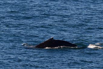 Cuando ya apenas quedaba luz, la yubarta apareció por última vez muy cerca del acantilado en la base del cabo y a pesar de que seguimos buscándola durante un cuarto de hora más ya no la vimos aparecer.