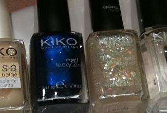 The other day, passing by I discovered Kiko they sold two glittery nail polishes with glitter in it of different sizes, one with a golden tone and the other with a reddish.