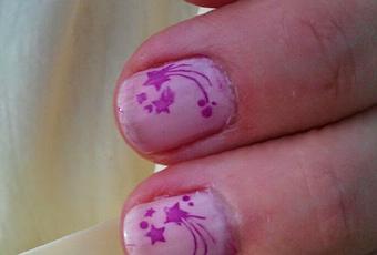 La cuarta manicura del reto es una manicura navideña realizada con la técnica de la estampación.....buscando, buscando, he encontrado la estrella de navidad que guió a los reyes magos al portal de Belén.