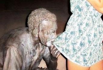 Nada mas divertido que el ingenio de alguna chica con ganas de reírse un poco para darle vida a una estatua.