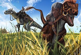 Ark Survival: Raptor and Baryonyx (Margaux Valonia)Ya está aquí una nueva entrega mensual de ilustraciones dinosaurianas entre las que encontramos diversos estilos y procedencias, como viene siendo habitual. Y aunque se cuela algún pterosaurio, se puede decir que es dinosauriana 'pata negra', con referencias a "ARK: Survival Evolved", a las artes marciales mixtas e incluso a la monarquía...