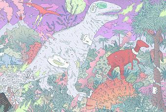 Tribute to Rudolph F. Zallinger (Kalla)La última ronda de ilustraciones dinosaurianas del año viene con homenajes futuristas al paleoartista Rudolph F. Zallinger, espinosaurios skaters, puestas de sol mesozoicas y el cameo no dinosauriano en formato pareidolia de dos trilobites. El próximo año pasa algo curioso: llegaremos a las cien entregas de esta sección, lo que quiere decir que por aquí han pasado ya cerca de seiscientas ilustraciones. ¿Recuerdas tu favorita?