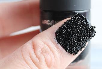 A continuación sobre una bandeja, coger una cuchara y echar por encima las perlas por todo el largo de la uña.