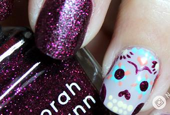 Para la realización de este diseño váis a necesitar una dotting tool y un pincel fino de nail art. Es muy importante que elijamos bien los tonos a complementar. Yo he usado un esmalte muy especial de Deborah Lippmann que tiene un curioso acabado de glitter satinado y un color deliciosamente oscuro. Se llama Good Girl Gone Bad. Para la calavera un tono cremoso, bien blanco, gris, malva, rosa… pero muy suave. Los motivos podéis elegir infinitos, yo he utilizado algunos sencillos floridos para decorar la calavera.