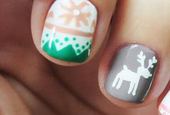 El nail art de motivos de jersey navideño es muy popular en estas fechas. Podéis ver toda una selección de manicuras en este link. Los motivos típicos son el reno, ciervos, copos de nieve, cruces, corazones, puntos y motivos geométricos. Hay que ser apañada para hacerlo a mano alzada, pero también hay placas de estampar que nos pueden facilitar mucho el trabajo. El año pasado hice un nail art invernal con motivos del típico estampado Fair Isle, todo con pintura acrílica. Desde luego yo me quedo con el de este año ;) Pero eso es sobretodo porque veo la mejoría. También me voy dando cuenta de que prefiero trabajar con esmaltes que con pintura acrílica, aunque está claro que se pueden hacer auténticas virguerías con acrílicos, pues son mucho más versátiles.