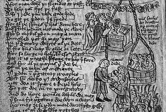 Se trata de un ícono medieval, me parece que del siglo XVI. Si ustedes observan con detalle, algunas cuestiones se destacan. En la parte inferior derecha puede verse a un grupo de personas padeciendo en el purgatorio; en contraste, en la parte superior puede verse el cielo y un grupo de personas congregadas en torno al Señor. Lo interesante es que en el medio de los dos extremos vemos una soga apoyada en una polea que sirve para elevar a la gente desde el purgatorio hacia el cielo. El modo de rescatar a las personas del purgatorio es caracterizado en el ícono de un modo singular: se requiere de dos cosas a la vez, ambas se ponen juntas y se les asume como inseparables (noten la conexión de la soga), a saber, del sacrificio del altar y de las obras de misericordia. La contemplación del amor de Dios en el altar del sacrificio y la opción preferencial por los pobres de Jesucristo. Separar estas dos cuestiones solo empobrece la vida cristiana, pero, a la vez, limita nuestra capacidad de hacer el bien a los otros, ya sea en un sentido muy directo y práctico o en uno más escatológico como en la escena que estamos viendo. Esta imagen, para quien conoce un poco la obra de Gutiérrez, recuerda la interdependencia de los dos lenguajes sobre Dios tratados con detalle en su libro sobre Job: contemplación y profecía deben estar de la mano siempre, solo así se abre uno al misterio salvífico de Dios y solo así logra servir propiamente a los hermanos.