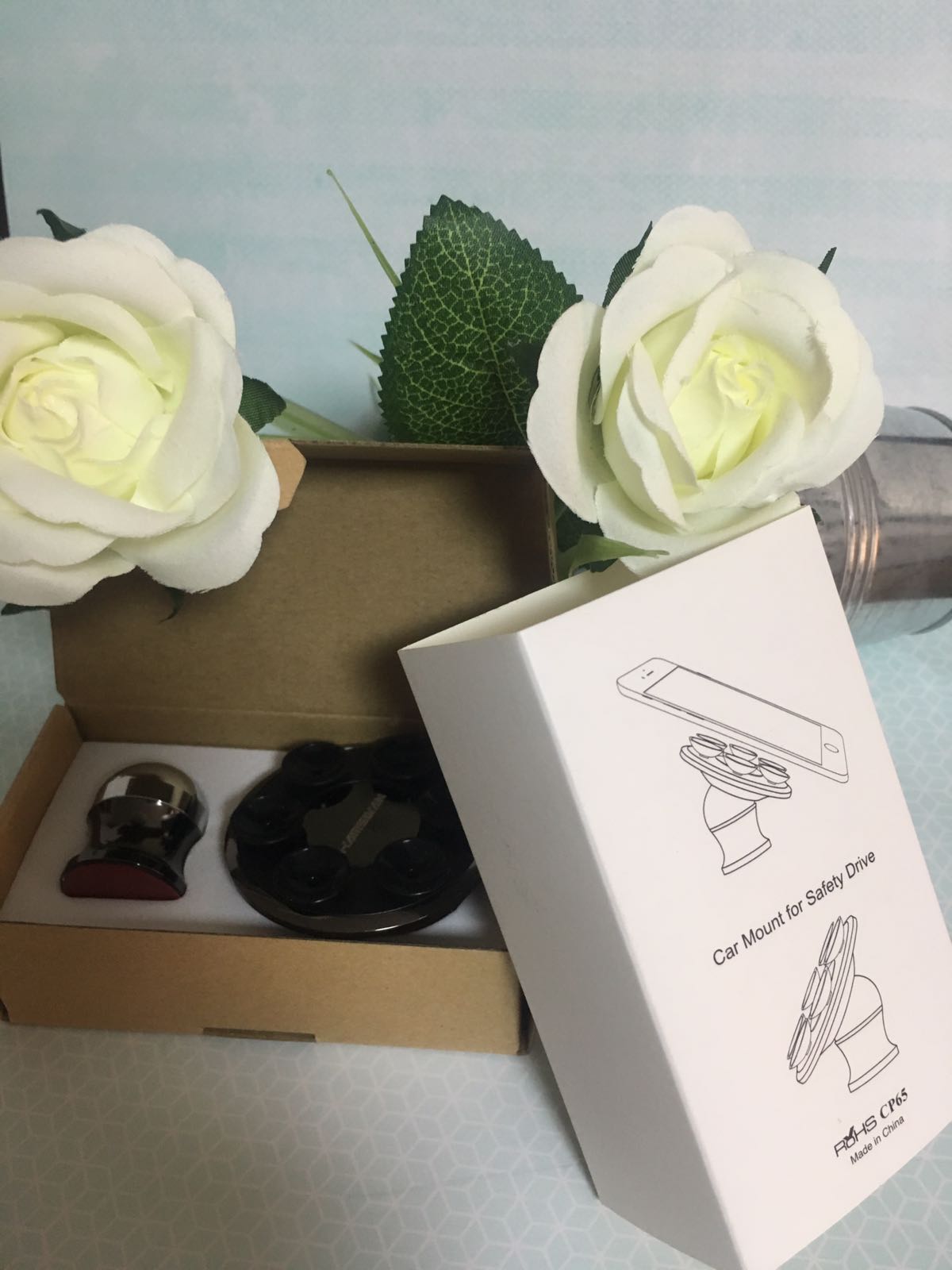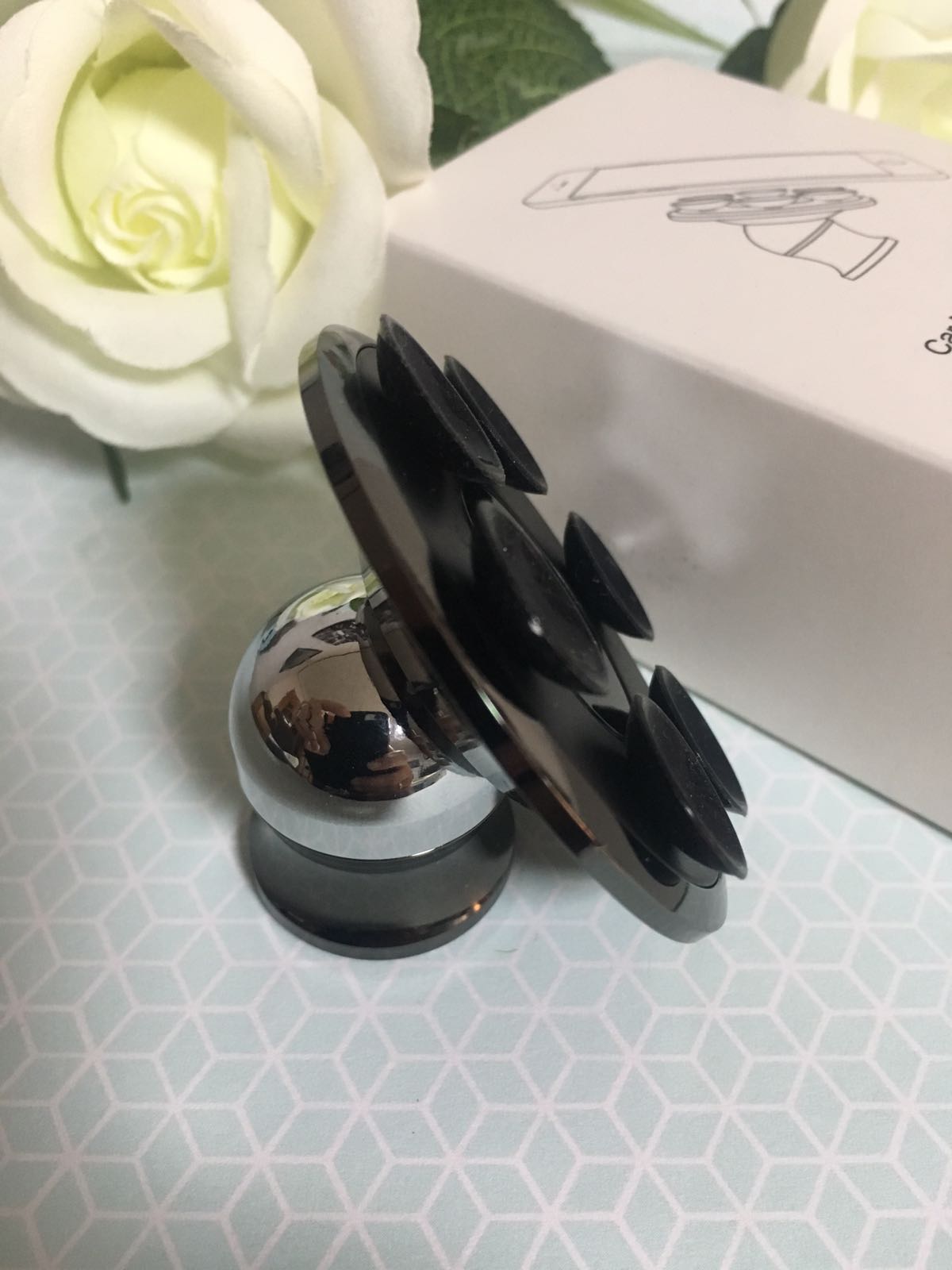 Arriba veis la ventosa que agarra al móvil, tiene 6 ventosas, aluminio, silicona y ABS (y como veréis en el video vienen varias de recambio.