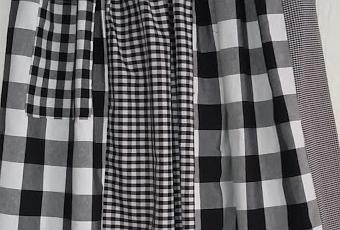 Medio metro de cada una, lo mínimo que te venden en algunas tiendas, eran todas de cuadros de vichy... blanca y negra... pero todas de diferente tamaño. Me contó su idea.
