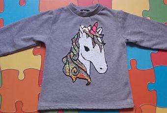 Ella está contentísima con su sudadera de unicornio... deseando que llegue el frío para estrenarla.