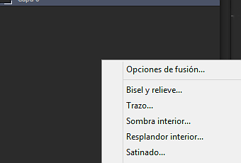 - Bisel y relieve: Añaden varias combinaciones de iluminaciones y sombras a una capa.