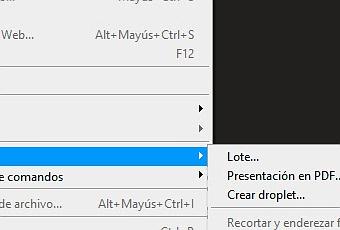 Como veis en la captura de arriba, en el menú archivo tenemos la opción Automatizar, donde encontraremos una serie de opciones para poder trabajar con varias imágenes a la vez.