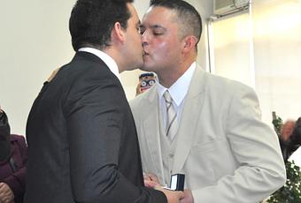 La pareja contrajo el vínculo en una ceremonia en el Registro Civil de Santiago, donde asistieron sus familiares, amigos y activistas del Movimiento de Integración y Liberación Homosexual (Movilh).