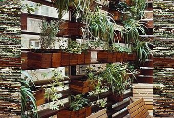 La disposición de las macetas y las plantas dentro de la terraza, consiguen dar un ambiente de privacidad a la vivienda, a la vez que el muro deja pasar la luz y el aire.