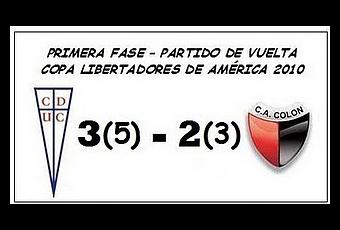El Club Atlético Colón cayó en Chile ante la Universidad Católica. Fue 3 a 2 en los 90 minutos y 5 a 3 en los penales. A pesar de lo ajustado de la definición, el Sabalero fue ampliamente superado por el rival, que jugó mejor y futbolísticamente mereció quedarse con la serie. De esta manera el Rojinegro quedó eliminado de la Copa Libertadores de América en la Primera fase y la Universidad Católica de Chile consiguió el pasaje para la Segunda fase, donde competirá en el Grupo 8.El partido tuvo un trámite cambiante. Ganaba Universidad Católica por la diferencia mínima Lo dio vuelta Colón de forma inesperada y se puso 2-1. Y en el final del partido, los locales se repusieron, llegaron al 3-2 que obligaba a ir a los penales, y desde los 12 pasos, con un 5-3, los chilenos lograron un lugar en la segunda fase de la máxima competencia continental.