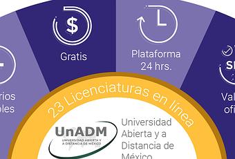 La Universidad Abierta y a Distancia de México (UNADM) es una universidad que ofrece más de 30 carreras diferentes, las cuales pueden ser estudiadas gratuitamente en línea.