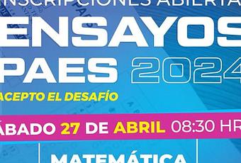 SÉ PARTE DEL PRIMER ENSAYO PAES MATEMÁTICA M1 y M2 🥳.Primer ensayo del año en conjunto con el Preuniversitario Pedro de Valdivia, que se realizará en todos nuestros campus y sedes 👏🏻