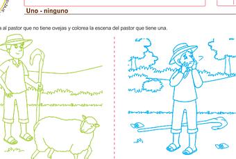 Ficha de lógico matemática para educación infantil 3 años: uno – ninguno