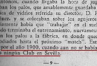Esta frase subrayada, sacada de contexto, es utilizada torpemente por algunos para intentar demostrar que el Sevilla FC no nació en 1890.