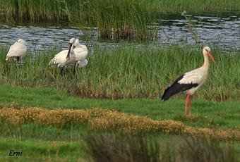 En la charca de Gandarias alguna garza real, una cigüeña blanca y un cantarín carricero tordal.
