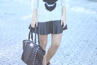 In this look I'm wearing again my beloved Zara studded sneakers that I finally found at the airport, as I told you. This time, I have mixed them with this new leather - like skirt (I love them) and with this also new grey jumper. Do you like the outfit?