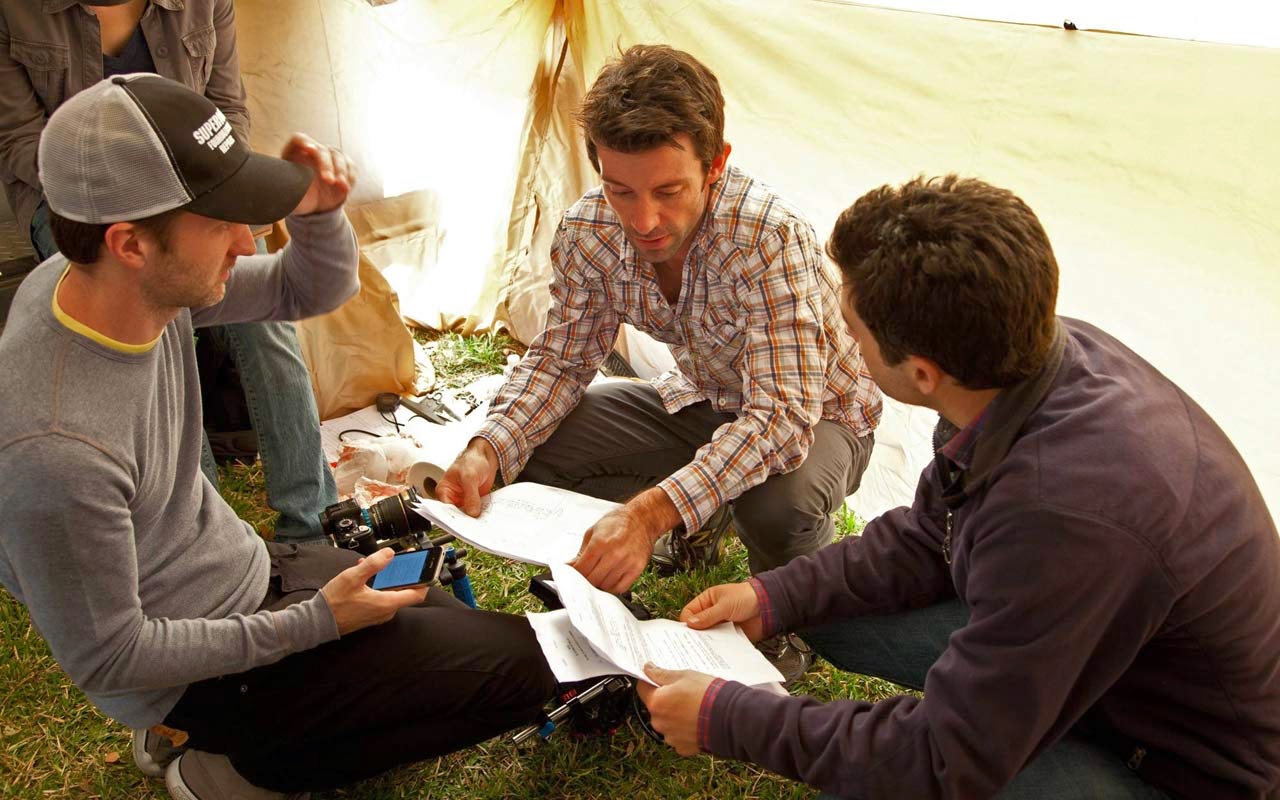 Shane Carruth (centro) junto a su equipo de producción