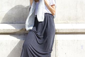 La opción que os enseño hoy es una de mis favoritas porque las prendas oversize sabéis que son un must en mi armario al igual que la ropa larga o XL. Hoy he decidido combinar una falda en color gris petróleo de un tejido muy suave que mezcla algodón y seda con un jersey gris perla oversize. Para continuar con la sencillez del look opté por ponerme debajo una camiseta blanca básica. Las sneakers dieron el toque más deportivo y al ser plateadas iban a juego con mi pequeño clutch en tono plata envejecida y mis joyas de plata también. Siguiendo la tendencia XL del outfit escogí mis maxi gafas de sol para los momentos de mayor luz.