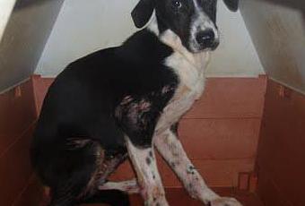 En una casa ese problema de piel se solucionaria rapido. Por favor si no puedes adoptar, difunde, es la mejor ayuda que les puedes dar...su vida depende de ello..