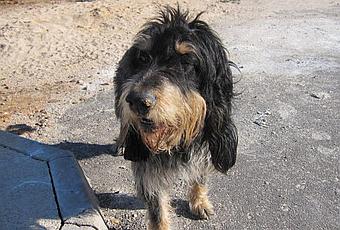 El bretoncito se acerca a los coches cuando pasan, se va con todo el mundo a ver como tanteando a ver con quien se queda, el pobre.... El perro de aguas dicen que lo pasa mal con el frío, también se arrima a los coches como esperando que vengan a recogerle.