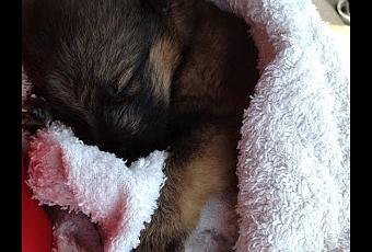 Este es uno de los 13 canijos que abandonaron en una caja.