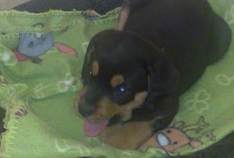 El “pequeño cachorro” es en realidad un bebé de rotweiller de un mes y algo, que aún toma leche y empieza a comer por si solo.