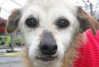 Esta perrita es VIEJI, así le he puesto de manera cariñosa, tiene como 12- 13 años y estaba abandona en un pueblo de Sevilla con una hernia muy antigua y para colmo un coche le dio un golpe...