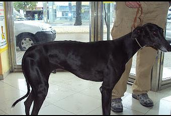 Este galgo es macho, de aproximadamente 2 años. capa negra y no tiene microchip.