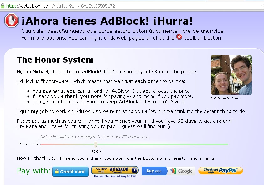 Listo, ahora ya tenemos en nuestro navegador instalado la extension, los anuncios se dejaran de hacer visibles automaticamente solo hay que tener en cuenta que para las pestañas abiertas hay que actualizarlas. Otra cosa que observo es que algunas paginas necesitan desbloquear la extension para hacerlas funcionar por ejemplo: