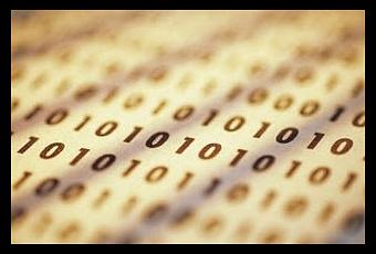 - Del sistema de numeración binaria, que es utilizada como un interruptor, cada cosa tiene dos estados, 0 y 1, pongamos como ejemplo luces: si es 0 esta apagada y si es 1 esta encendida. Ahora bien si tenemos varias luces hay varias combinaciones, y para no tener que esforzarnos mucho, a la primera le ponemos uno, a la siguiente el doble del anterior y asi sucesivamente. Los numeros se pueden escribir en este sistema, según la combinación. Para averiguarla al numero deseado se lo divide entre dos hasta tener de cociente final 1, se le dan la vuelta al cociente final, a los cocientes y a los restos, y, voilá, ahí esta el numero. Para escribir, se le asocia un numero a cada letra del alfabeto. Cada 0 o 1 es un bit, entonces al escribir cualquier frase tenemos x bits. Un CD tiene una capacidad de 5.900 millones de bits, esto es suficiente para escribir unos pocos libros.Un archivo digital se descodifica en bits de la siguiente manera: imaginemos una imagen, y encima de esta una cuadricula de 50 filas por 50 columnas, en cada cuadrado miramos si es mas oscuro o mas claro. Si es oscuro, seria negro, por lo tanto el numero uno. Si es claro se nota como blanco, y se pone un 0. Para ver mejor la imagen, lo logico seria duplicar el numero de cuadraditos y así sucesivamente pero ocuparía mas bits para almacenar información.