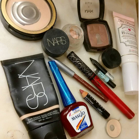 El esmalte de masglo y el lápiz de labios de essence los he usado solo un par de veces (¡mal!), pero el resto de los productos están bastante avanzados. La sombra ne crema de Nars ha bajado mucho y el colorete de nyx lo hemos tenido que reprensar.