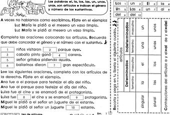 -Lee las siguientes oraciones, completa con los artículos de la derecha. Fíjate en el ejemplo.