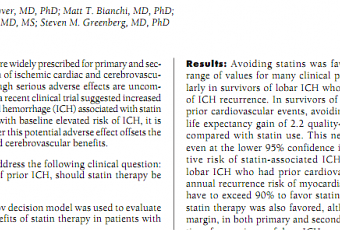 Este artículo que comparto hoy concluye que, aun con las limitaciones propias de aplicar un modelo matemático a posteriori a un ensayo clínico, el alto riesgo de recurrencia de una hemorragia intracerebral se ve aumentado en el caso de utilización de estatinas, por lo que estiman suficiente este hallazgo para desaconsejarlas (hasta la realización de ensayos aleatorizados dirigidos)