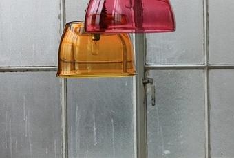 Siento predilección por sus lámparas de vidrio, en unos colores ideales, ámbar, rosas, azules, verdes. Las realizan con las piezas sobrantes de otras colecciones.
